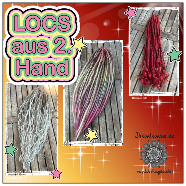 Mittlerweile habe ich von Kundschaft Locs aus zweiter Hand, die bei mir ebenso angeschaut und mitgenommen werden dürfen. Sie wurden von mir gereinigt, aufgefrischt und nachgearbeitet, so dass sie „wie neu“ angeboten werden können - aber leicht preisreduziert: |