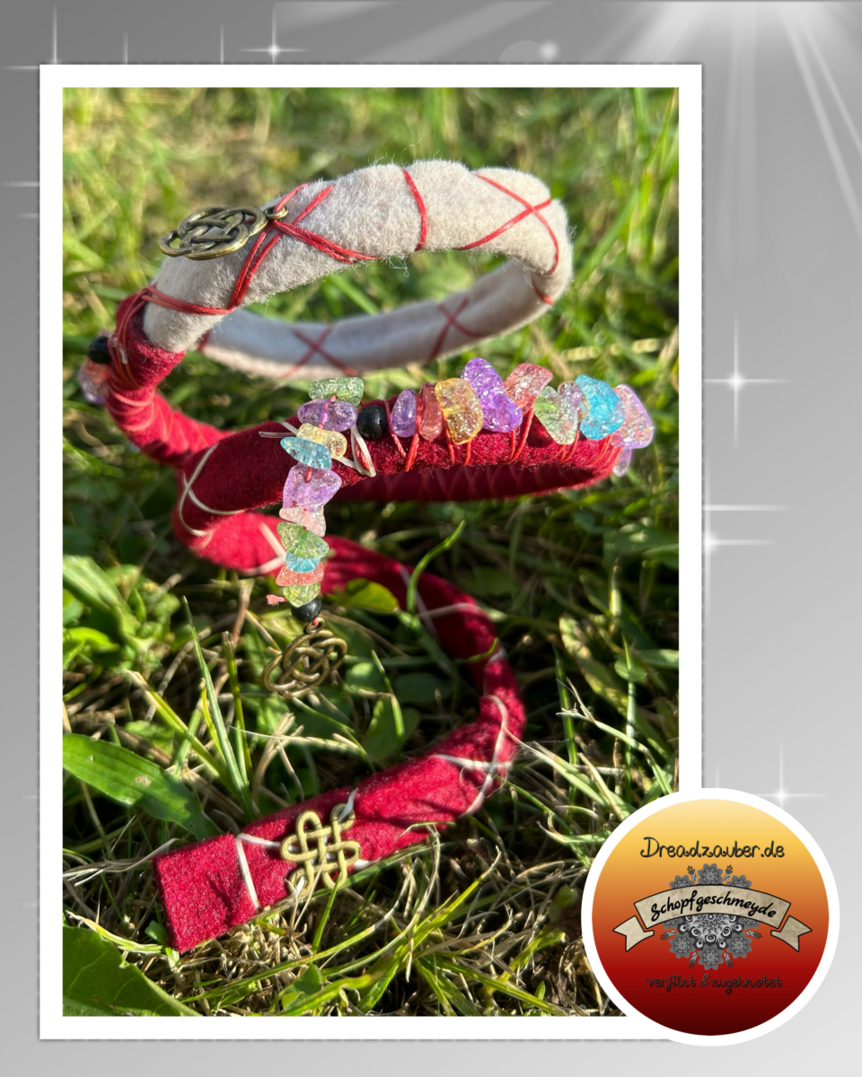 Und weil ich so begeistert bin und auch selber zwei ihrer wunderschönen Dreadspiralen mein Eigen nenne, darf ich immer wieder mal einige ihrer Arbeiten vorstellen, die ich für meine Kundschaft bestellt habe: