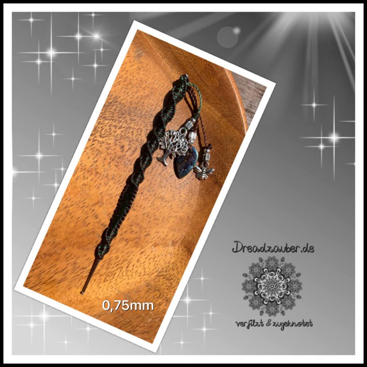 Manchmal entstehen ganz andere Dinge, die ich hier ebenso vorstelle. In diesem Fall eine Häkelnadel für den Eigengebrauch. Du kannst auch deine persönliche Häkelnadel anfertigen lassen. Es stehen die Größen 0,6mm und 0,75mm der zur Verfügung. Auf Anfrage sind auch 0,5mm möglich, jedoch mit etwas mehr Lieferzeit.